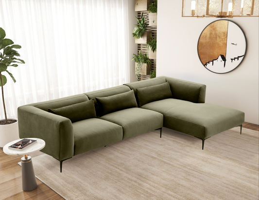 Laley Right-Facing L-Shaped Velvet Sectional in Green