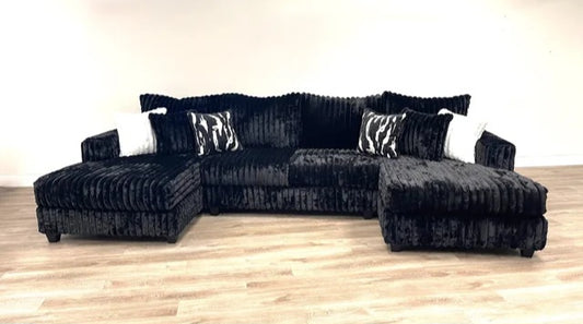 Black Corduroy Double Chaise Sectional 9700