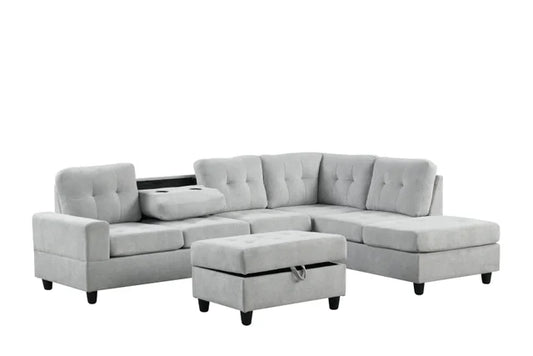 Heights41 Gray Reversible Sectional with Storage Ottoman
