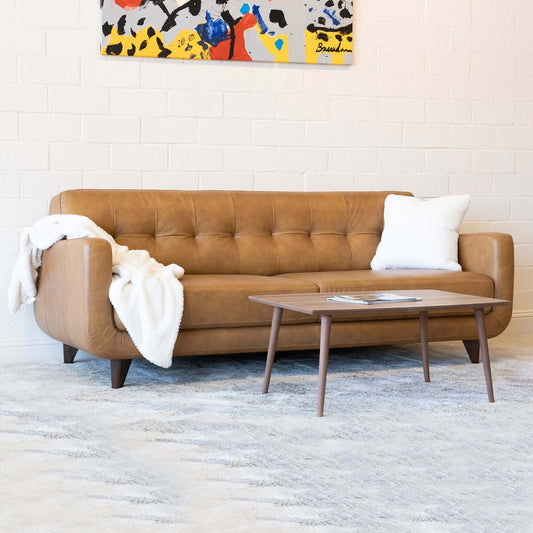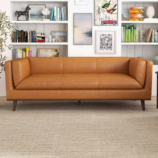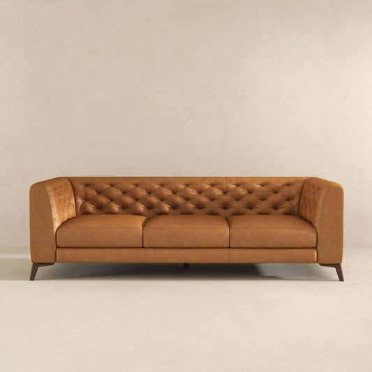 Mara Mid-Century Modern Tufted Cognac Leather Sofa