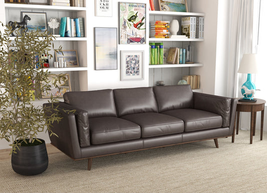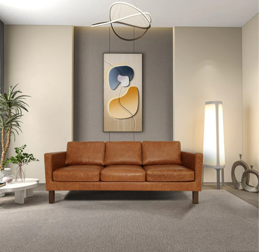 Addison 86" Cognac Genuine Leather Modern Sofa