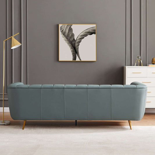 LaMattina Grey Genuine Italian Leather Channel Tufted Sofa