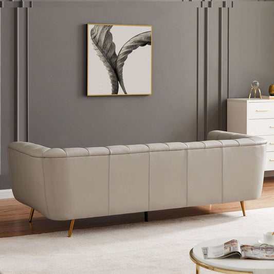 Ava Genuine Italian Tan Leather Channel Tufted Sofa