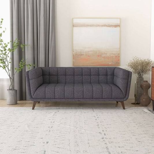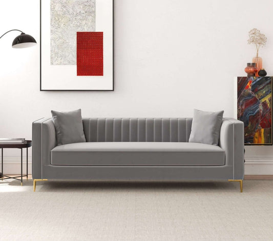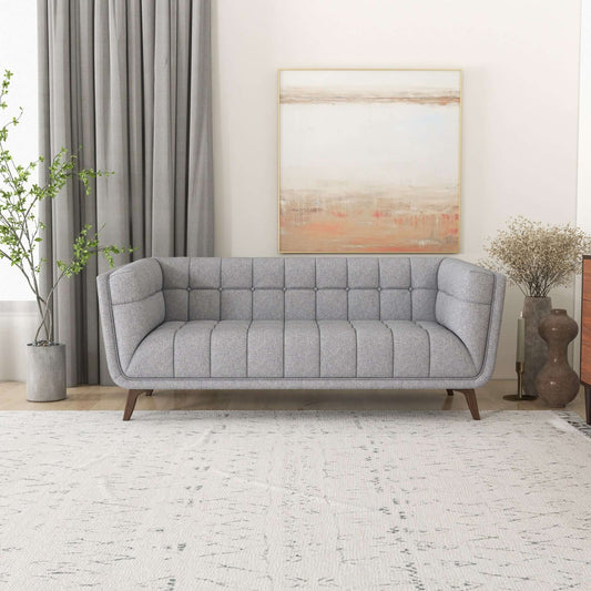 Angelina 84" Mid-Century Modern Gray Velvet Tufted Sofa