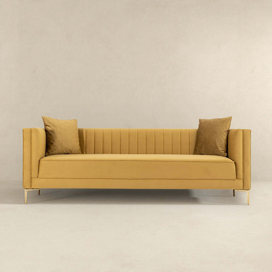 Angelina 84" Mid-Century Modern Mustard Velvet Tufted Sofa