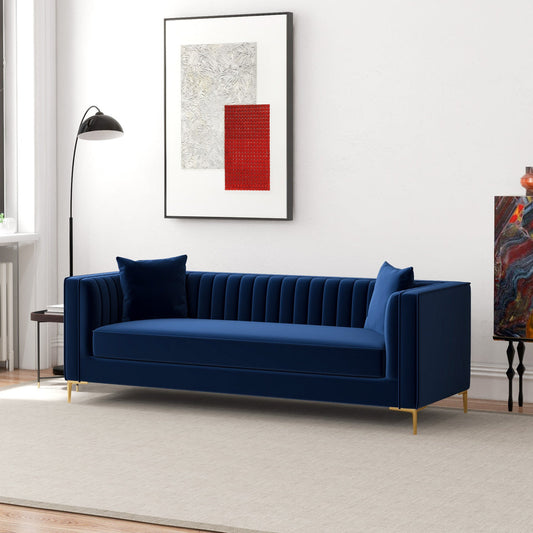 Casey 84" Mid-Century Modern Blue Velvet Sofa
