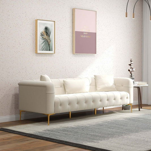 Alessandra Gold Plated Leg French Boucle Sofa In Cream