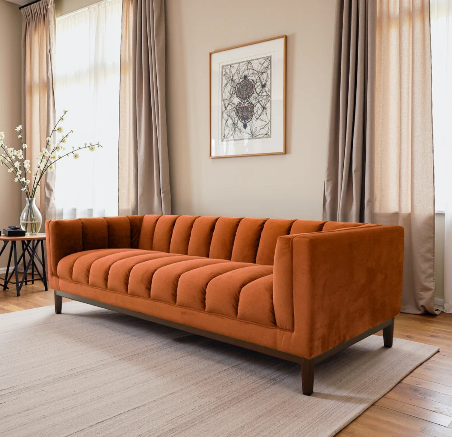 Melissa 91" Mid-Century Modern Orange Velvet Sofa