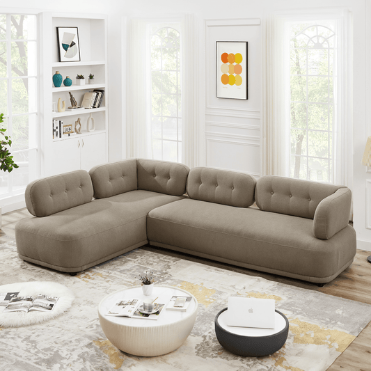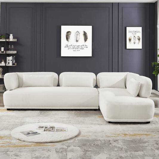 Doxtor Cream Velvet Mid-Century Modern Symmetrical Right Sectional