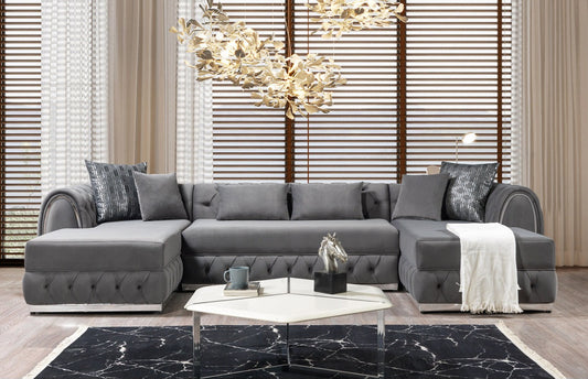 Jessie Velvet Gray Double Chaise 138" Sectional