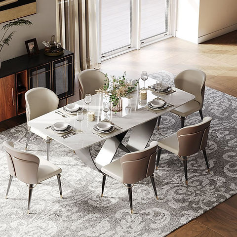 Material:Tabletop: 12mm Glossy Sintered Stone Tabletop/Base: Carbon Steel Base