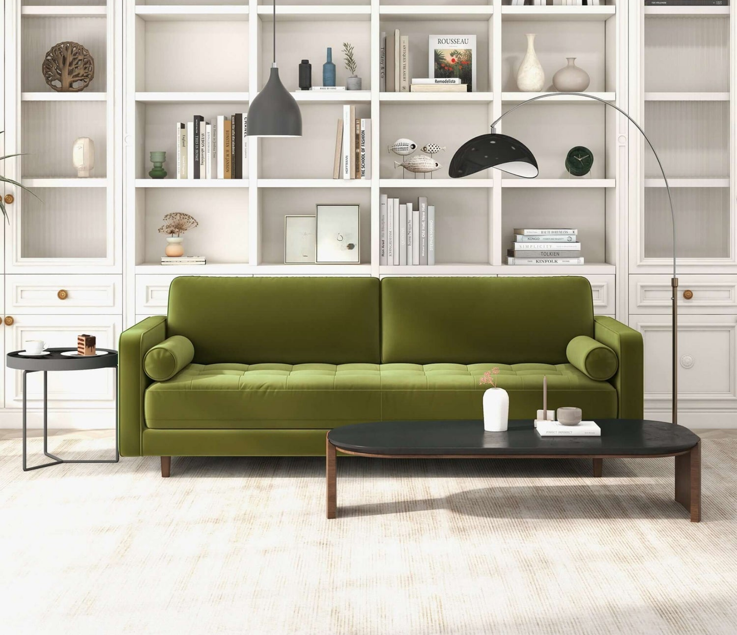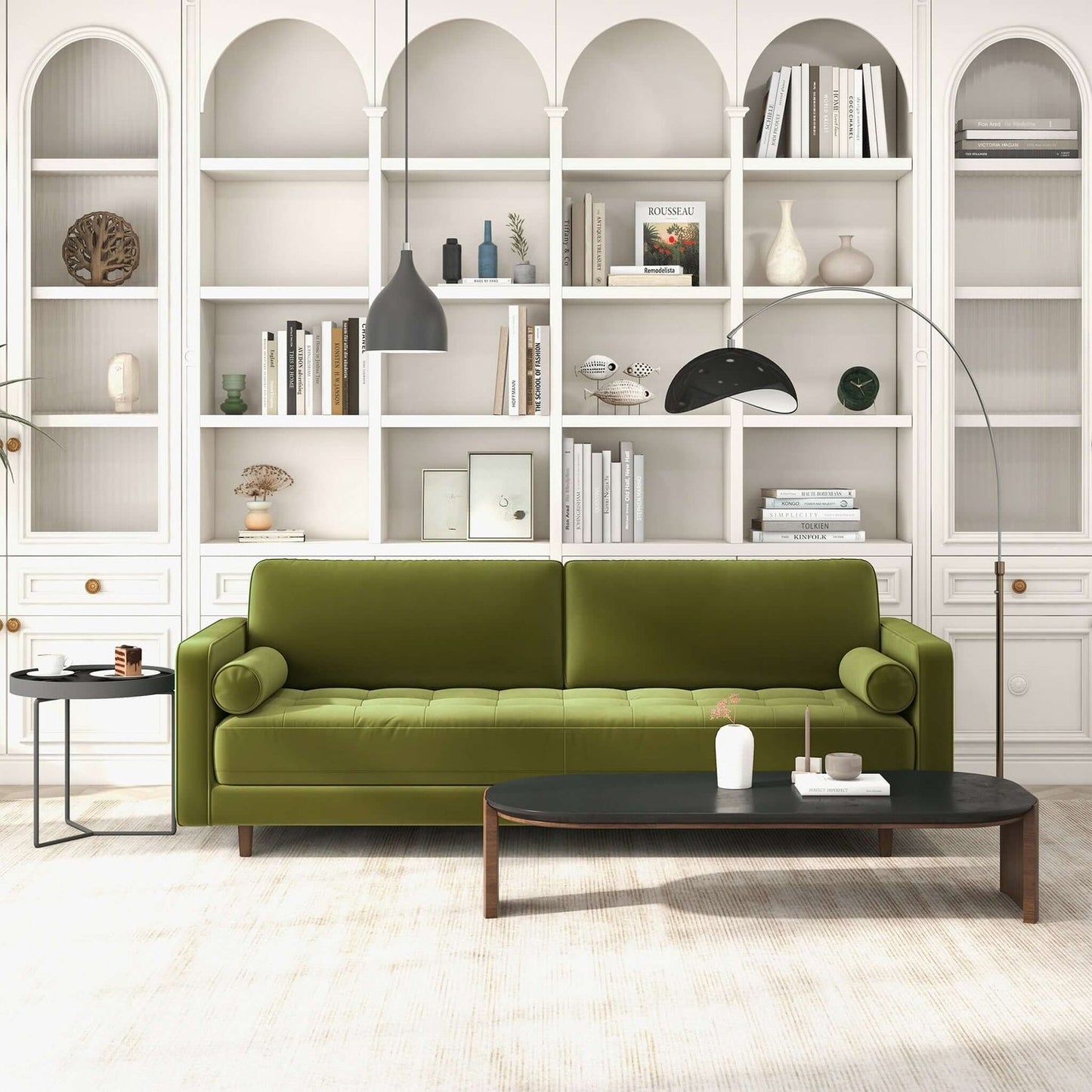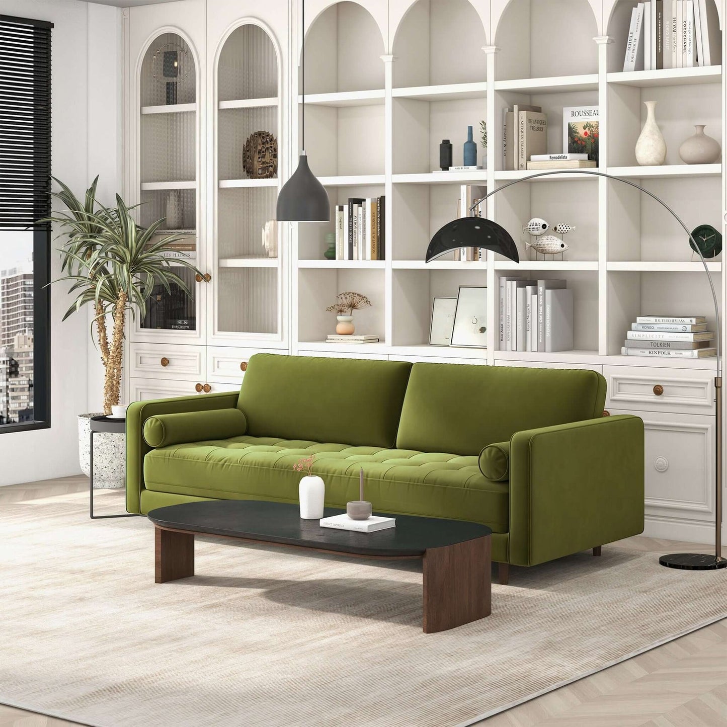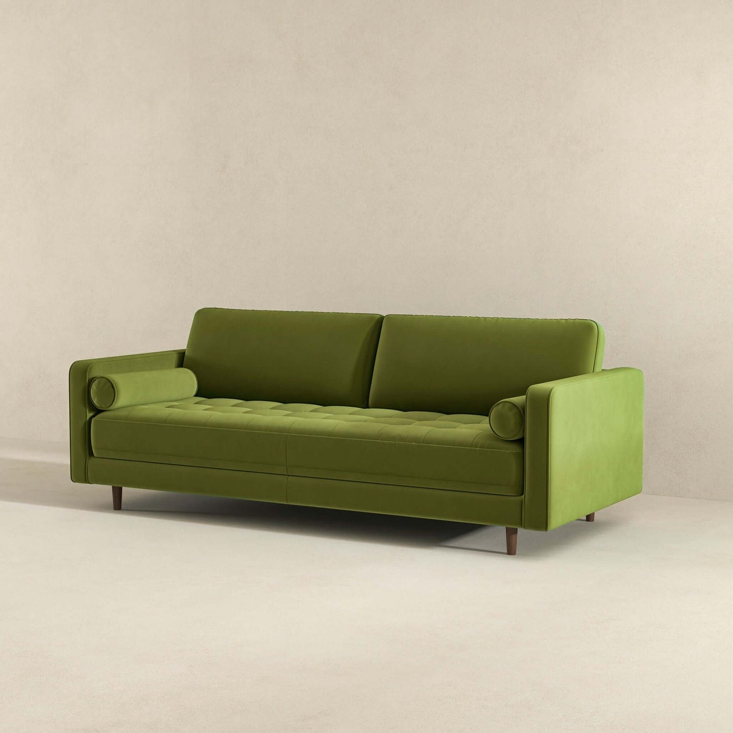 Anthony 88" Mid-Century Modern Pistachio Green Velvet Sofa