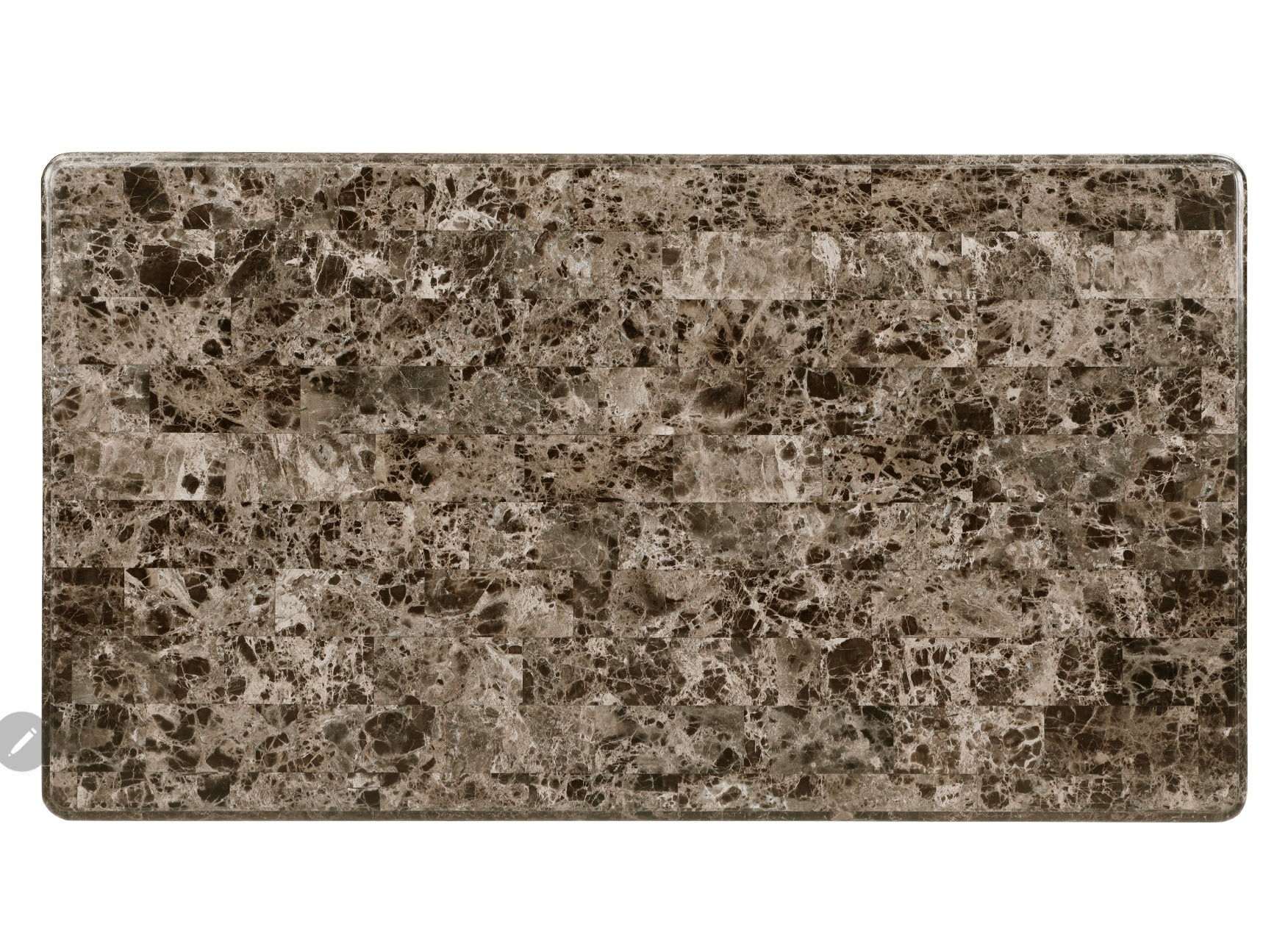 An elegant combination of traditional elements is paired to create the timeless look of the Balthasar Collection. Genuine marble tops the sofa table, cocktail table, and end table, while supported by classic cabriole legs. The table’s apron features decorative scroll detail, solidifying the traditional styling. Complementing the brown tone marble is the cherry finish, accented by gold tipping.