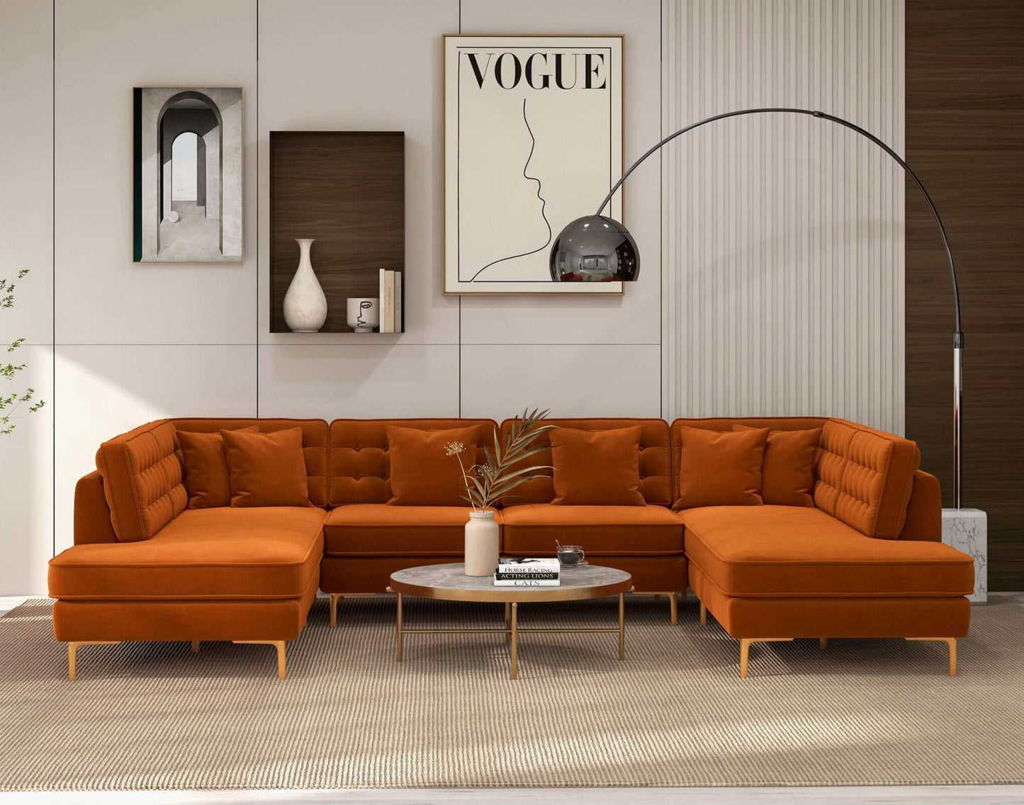 Brooke 131" Orange Velvet U Shape Corner Sectional