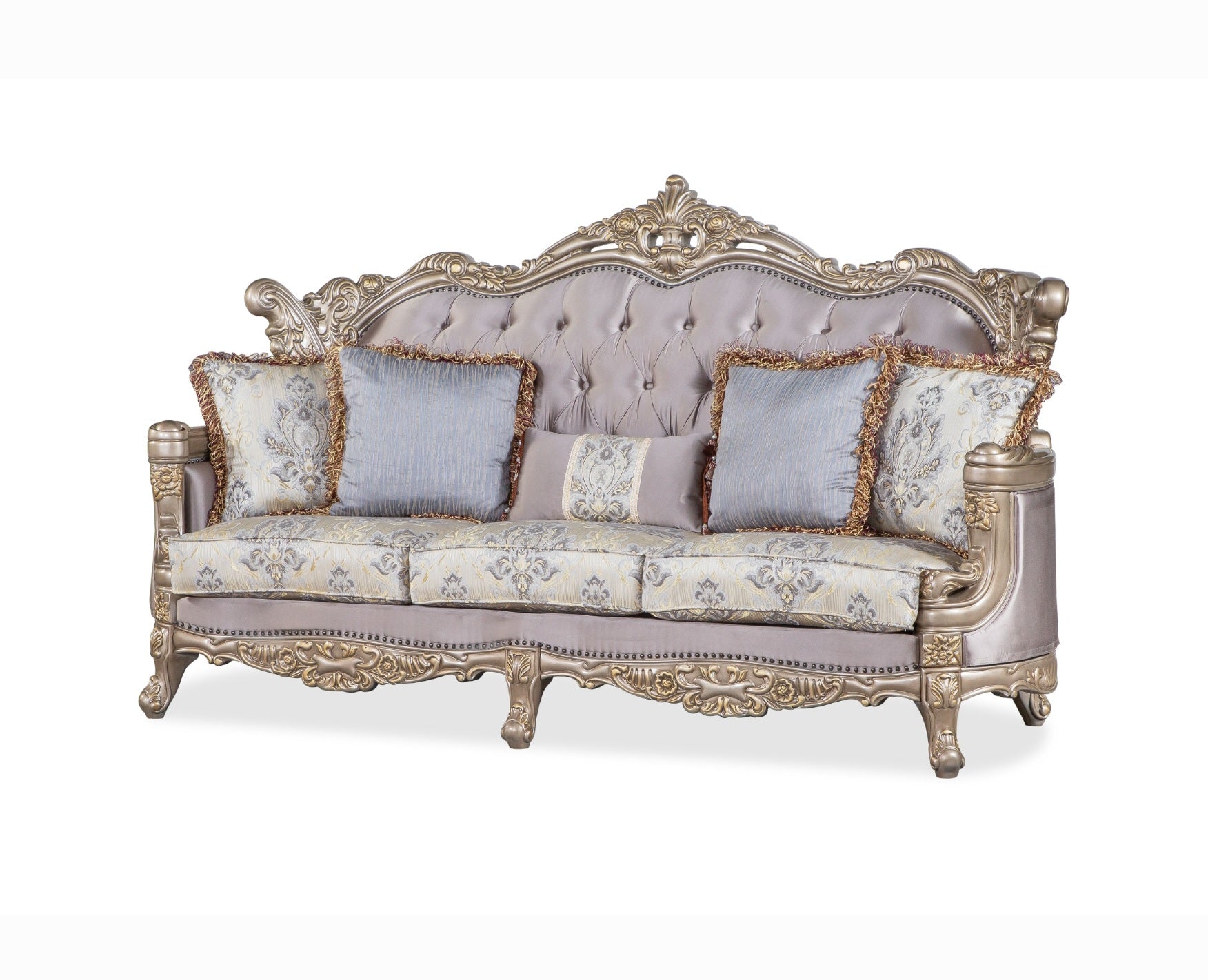 Introducing The Camila Silver Living Room Set, Where Traditional Glamour Meets Sophisticated Elegance. This Exquisite Set Features Beautifully Crafted Pieces Adorned With Unique Wood Carvings That Add A Touch Of Artisanal Charm And Opulence. The Luxurious Fabric Upholstery Complements The Intricate Detailing, While The Tufted Seats Enhance The Set'S Classic Appeal With Their Plush, Inviting Comfort. Each Element Of The Camila Silver Living Room Set Is Designed To Create A Stunning Focal Point In Your Home, Blending Timeless Beauty With A Touch Of Glamour For An Exceptional Living Space.