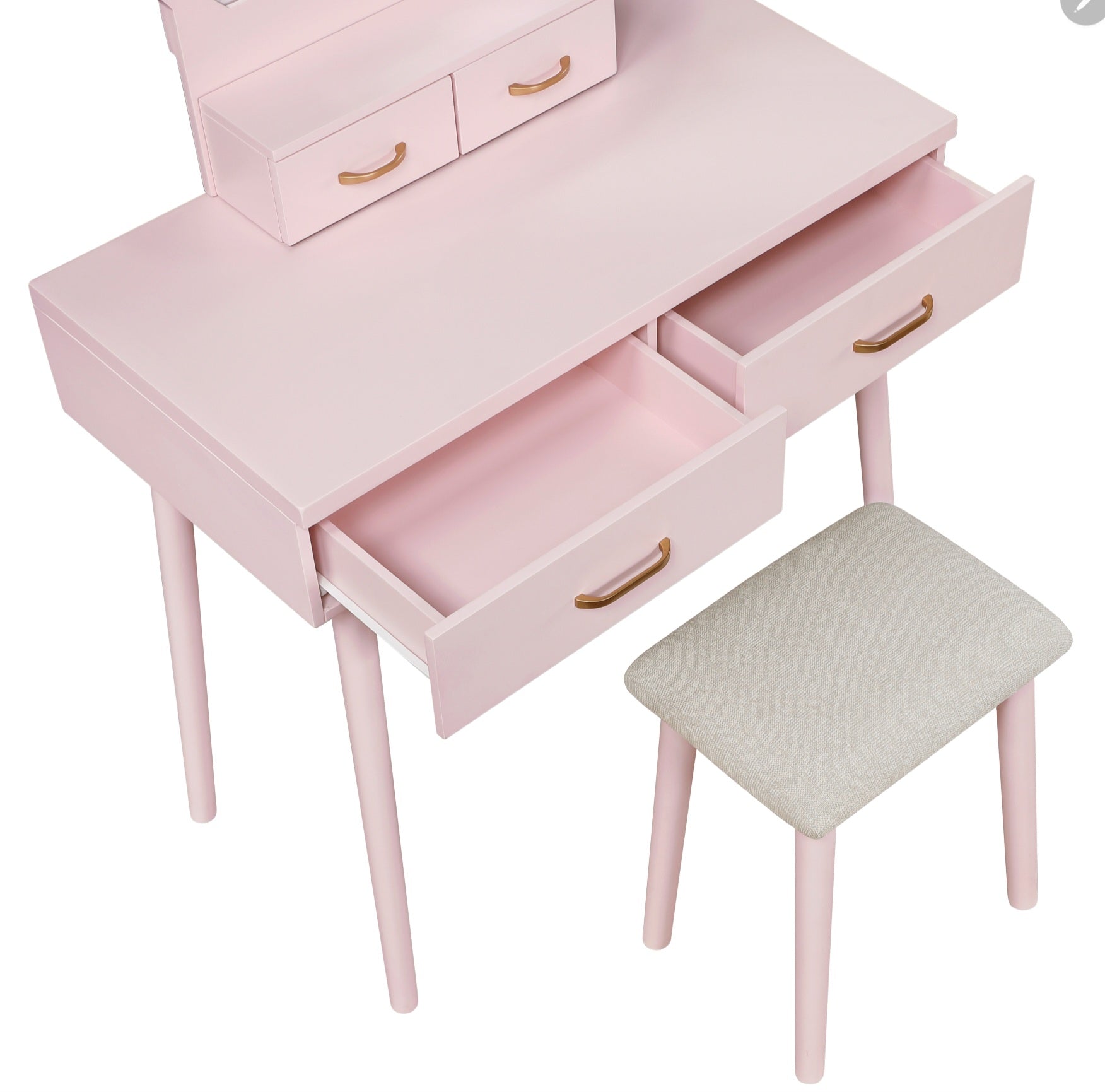 - Overall Dimension: Vanity: 31.5 x 16 x 54H, Stool: 14.5 x 11 x 19H