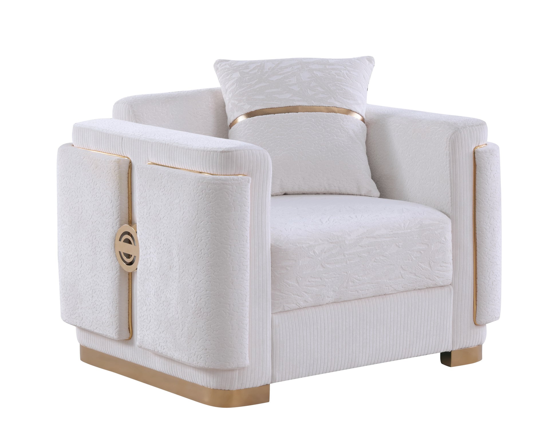 Signature Gold Accents: Bold, gold-tone trim follows the elegant curves of the armrests and forms a continuous, polished base for a touch of opulence.