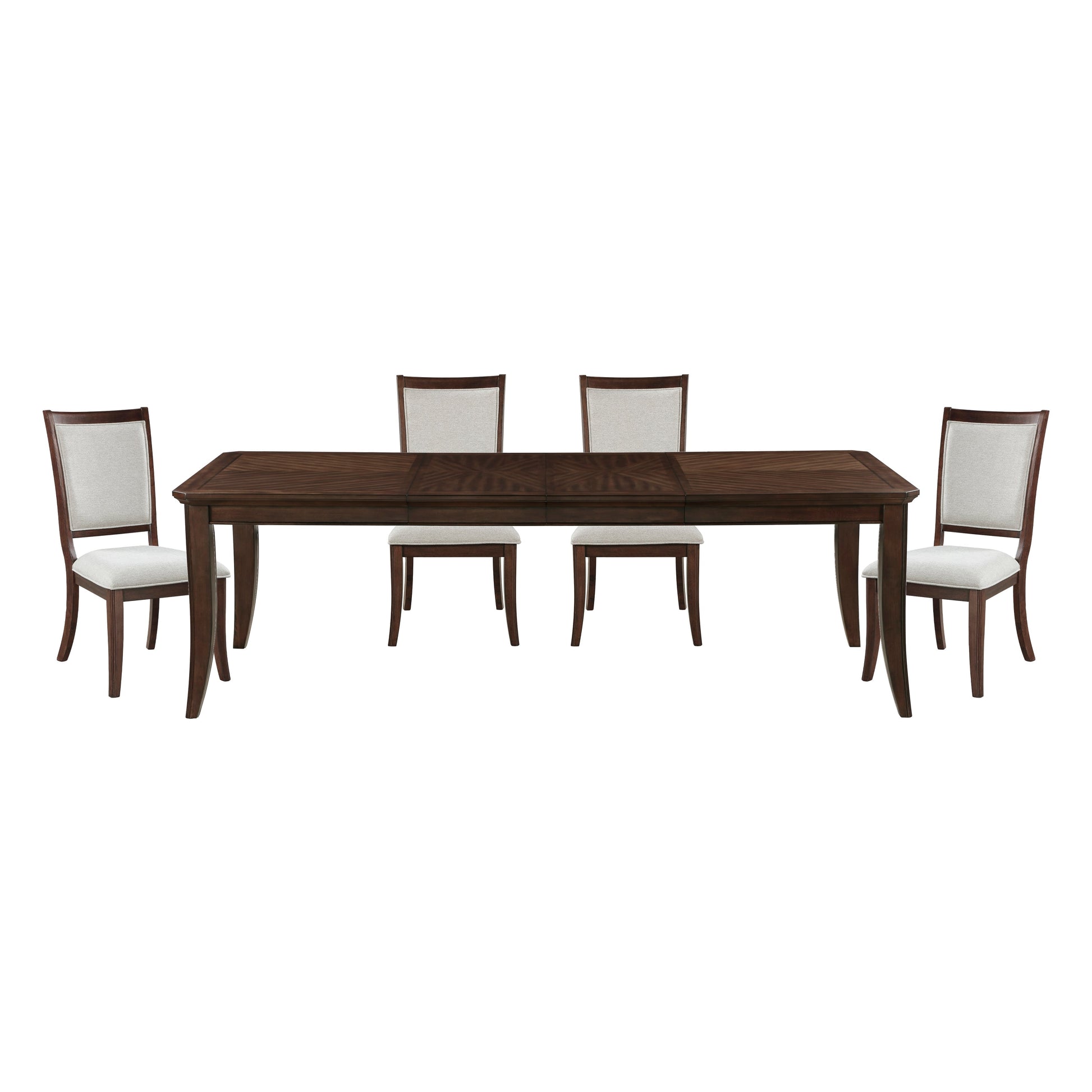 Transform your dining or living space into a haven of timeless elegance and practical sophistication with the Claymont Collection. This meticulously crafted ensemble, featuring an extendable dining table, arm chairs, side chairs, and a server, is designed to elevate your home with its rich cherry finish and striking dark walnut inlay. Each piece is constructed from high-quality birch veneer, solid wood, and engineered wood, ensuring durability and lasting beauty. The extendable dining table, comfortably seating up to eight, offers seamless flexibility for any gathering, while the plush, textured fabric upholstery of the arm and side chairs provides exceptional comfort for extended enjoyment. The server adds both style and functionality with its ample storage, including smooth-gliding dovetail drawers and adjustable shelved cabinets, all accented by polished chrome tone ring pulls. Designed to blend traditional charm with modern comfort, the Claymont Collection brings a cohesive and refined aesthetic to your home, creating a welcoming and stylish environment for family and friends. While assembly is required, the result is a beautifully coordinated collection that enhances both the aesthetic and functionality of your living space.
