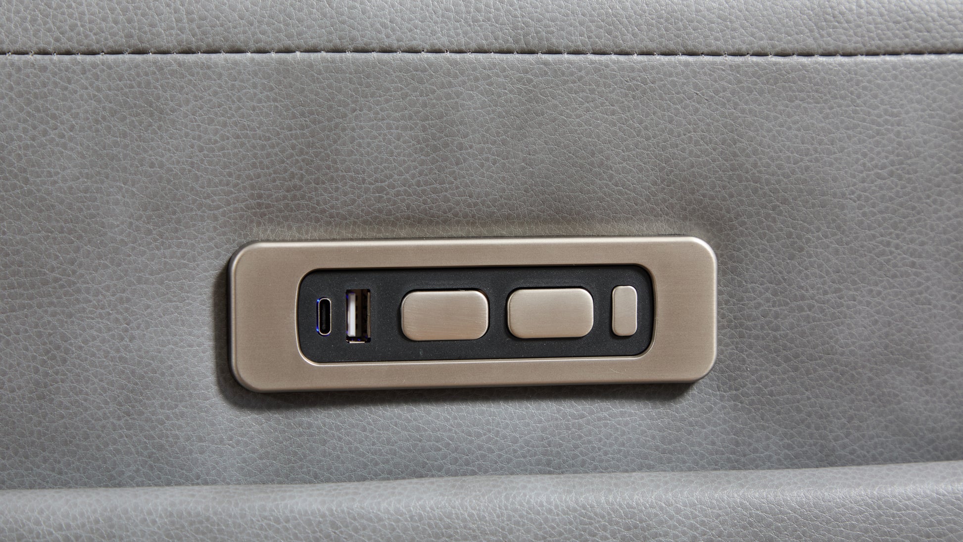 Experience ultimate comfort and convenience with the S681 Divani Power Sectional. This premium seating solution features two power recliners and one manual recliner, each with adjustable headrests for personalized support. Enjoy seamless entertainment with built-in Bluetooth speakers and reading lamps, while wireless chargers and USB ports keep your devices powered. Dual consoles offer hidden cup holders and storage pockets, plus additional storage compartments on each side—everything you need for the perfect relaxation setup.
