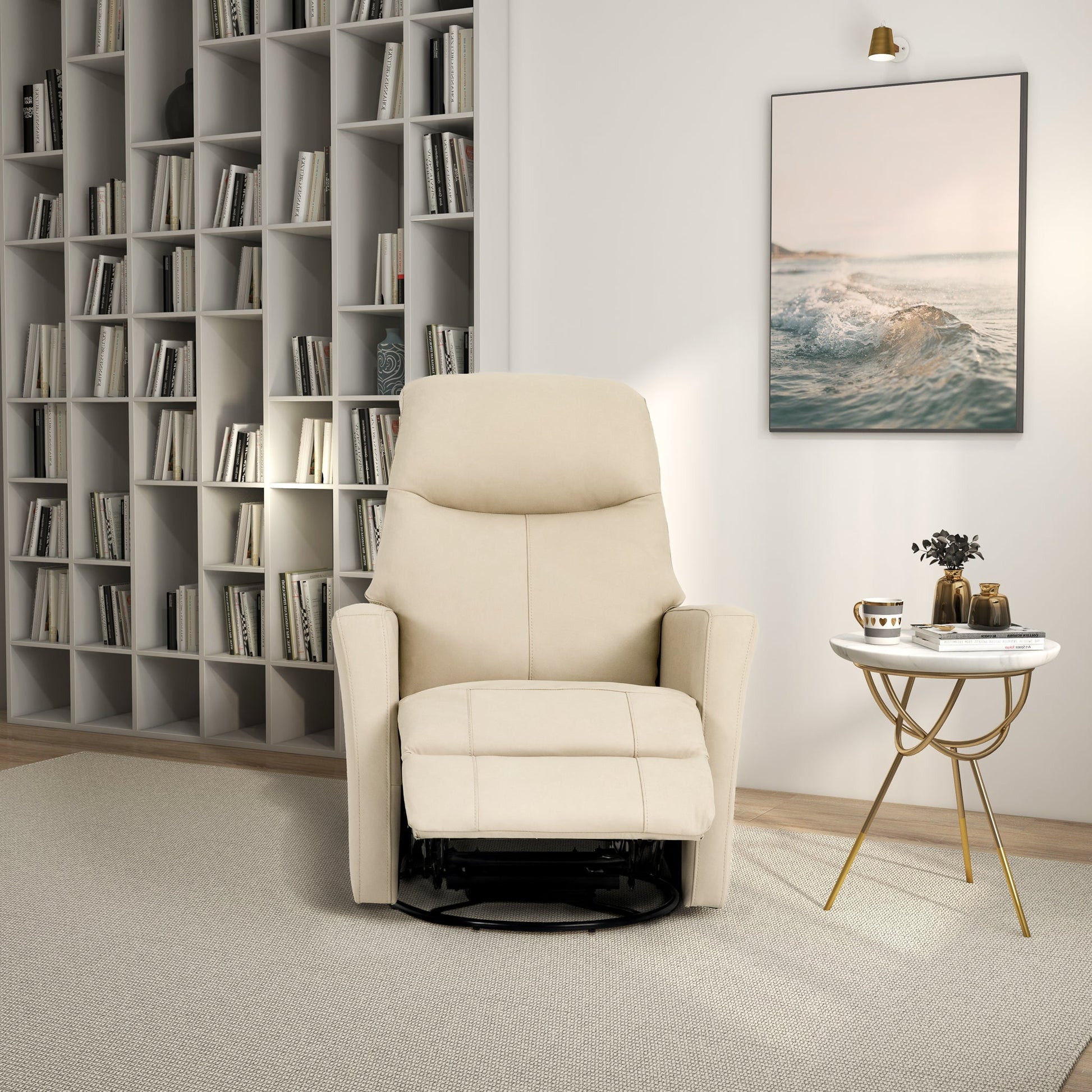 Harlow Swivel Glider Top Grain Leather Recliner Chair - Ivory