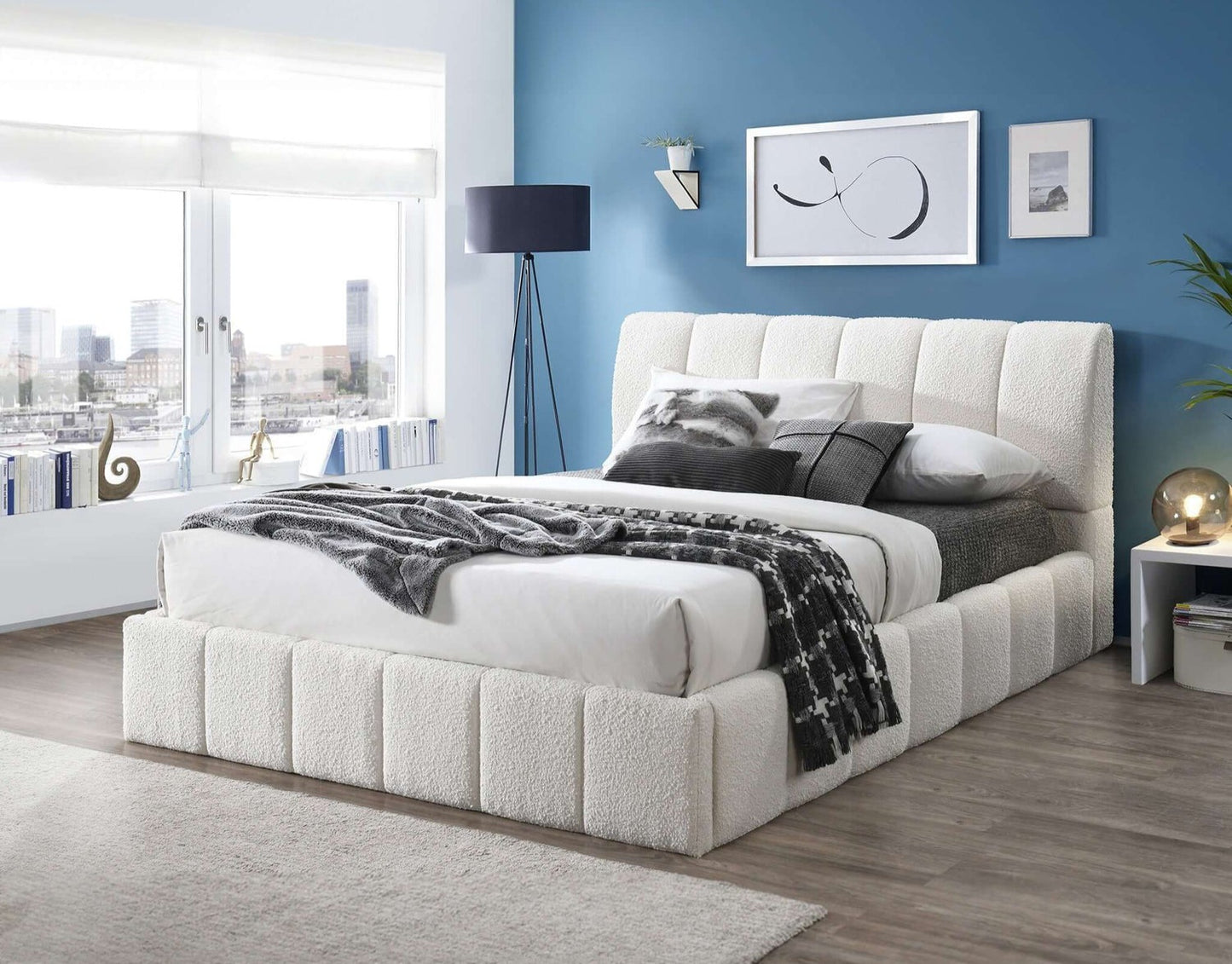 Hilar Mid-Century Modern White Boucle Queen Platform Bed