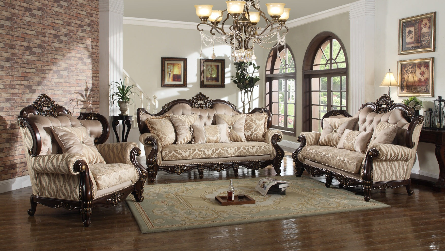 The Jade Living Room Collection Whispers Of A Bygone Era, Where Romance Blossoms In The Folds Of Traditional Elegance. Picture Yourself In The Warm Embrace Of A Sofa Adorned With Earthy-Toned Upholstery And Delicately Rolled Arms, Inviting Moments Of Shared Laughter And Stolen Glances. Crafted With Meticulous Detail, The Intricately Carved Wooden Accents And Polished Finish Of The Coffee Table Add A Touch Of Timeless Craftsmanship.