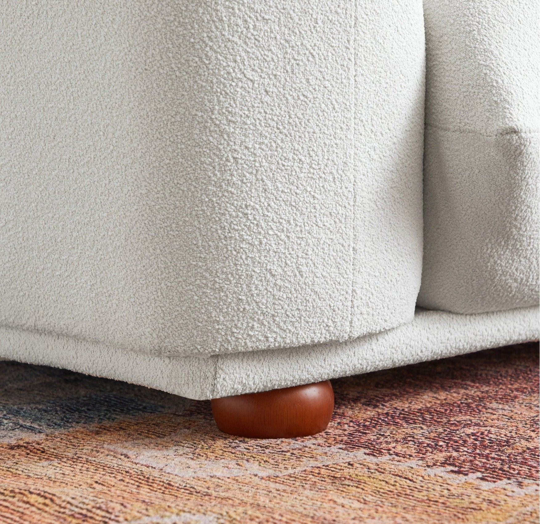 Introducing our boucle sofa as a stylish and versatile addition to any living room, game room, or entertainment area. With its three-seating capacity, this sofa provides ample space for family and friends to gather and relax. The cushioned seat offers exceptional comfort, allowing you to sink in and unwind after a long day. The solid wood legs not only add a touch of elegance but also ensure durability and stability.