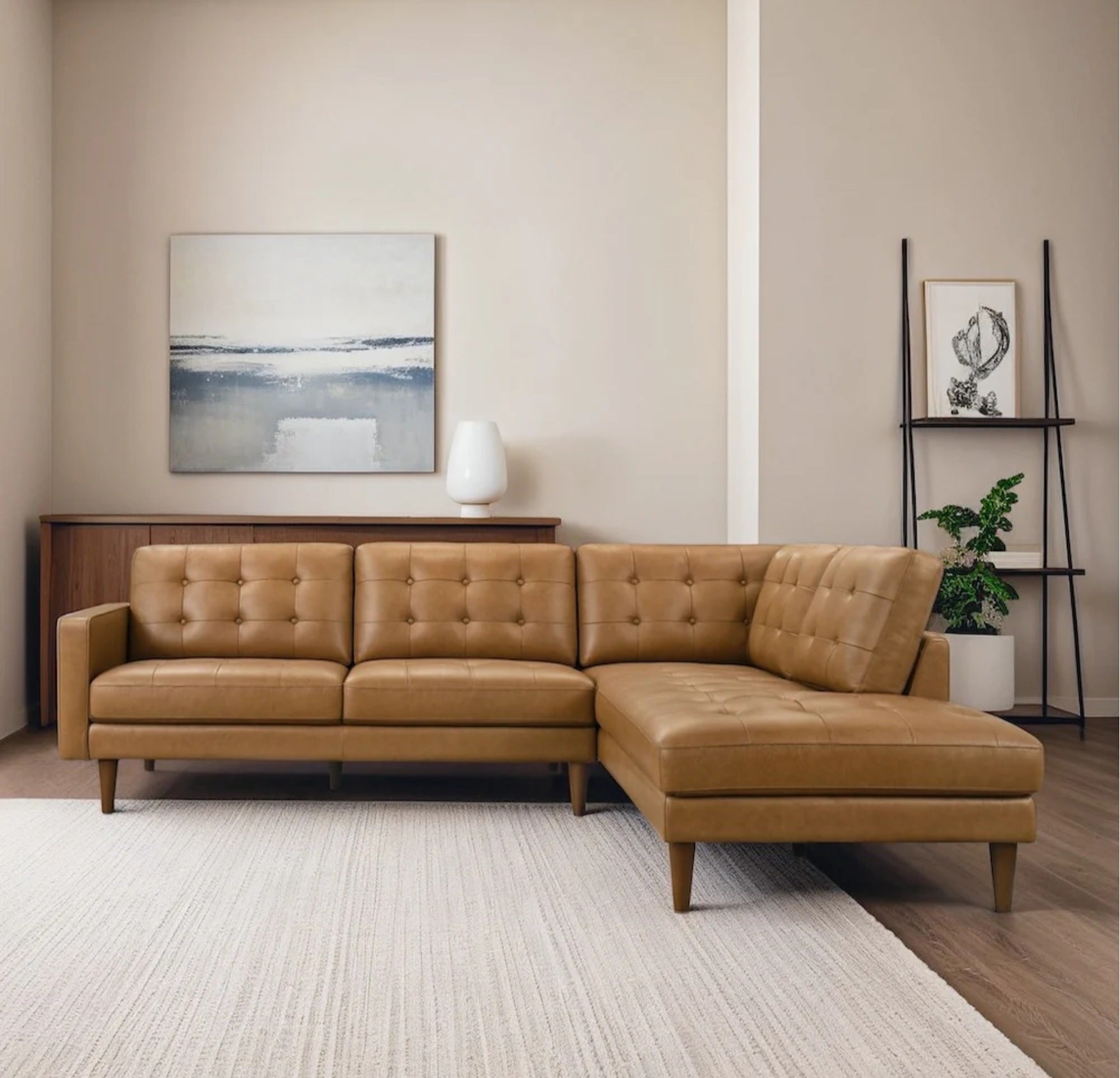 Lucco Cognac Modern L-Shaped Genuine Leather RAF Sectional