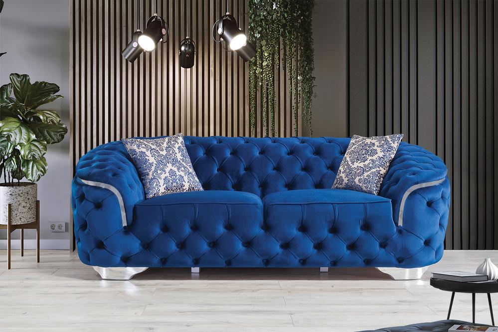 Featuring beautiful fully deep buttoned arms, back and seating. The Lupino Collection gives a classic- modern decor. The high- density foam padding provides the maximum comfort. Lupino has a luxurious, glamorous look that can change the aura of your living room. The gold details are sibu material which is durable, , tear-resistant, easy-to-clean, dimensionally stable.This material is used for all types of coverings, decorations, accessories and furniture to enrich the product.