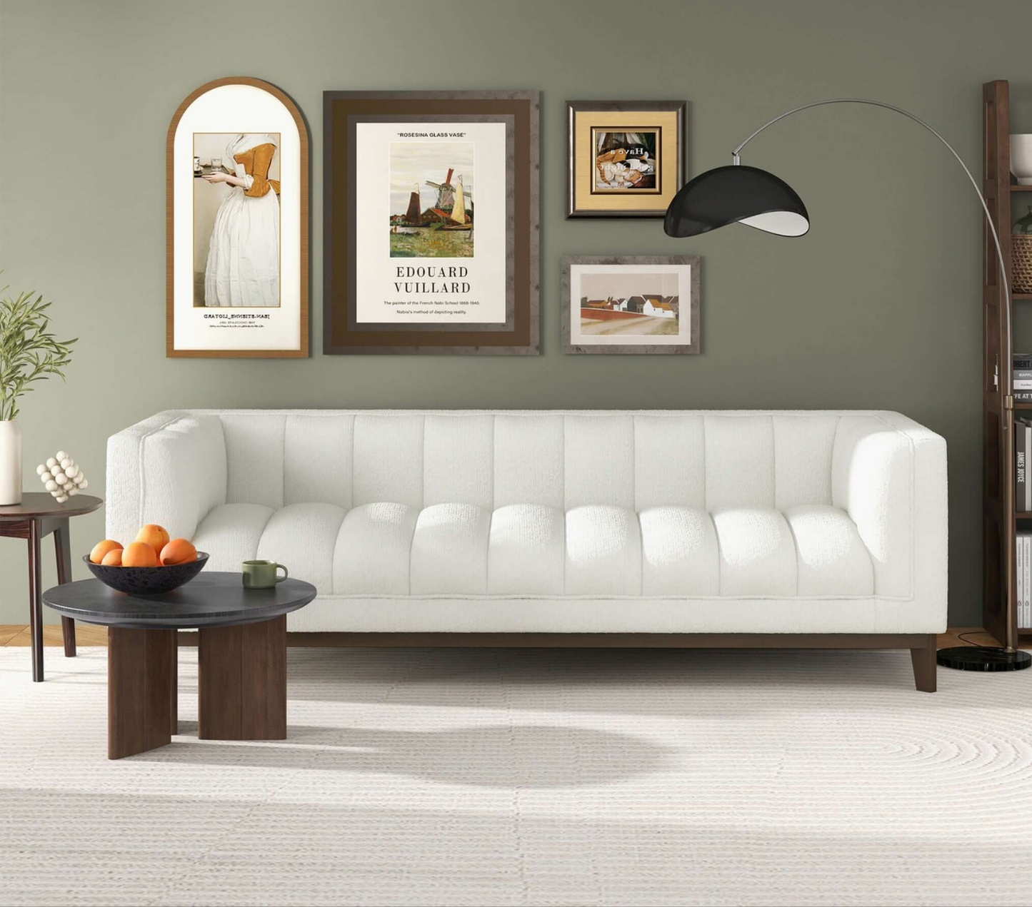 Melissa 91" Mid-Century Modern White Boucle Sofa