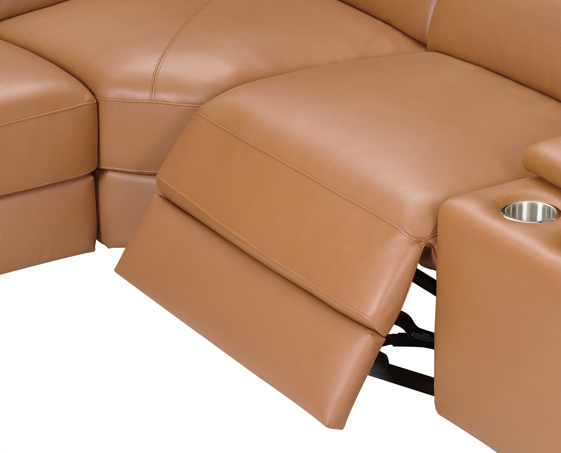 Picasso II Caramel 2-POWER Italian Leather 6pc Sectional MI633