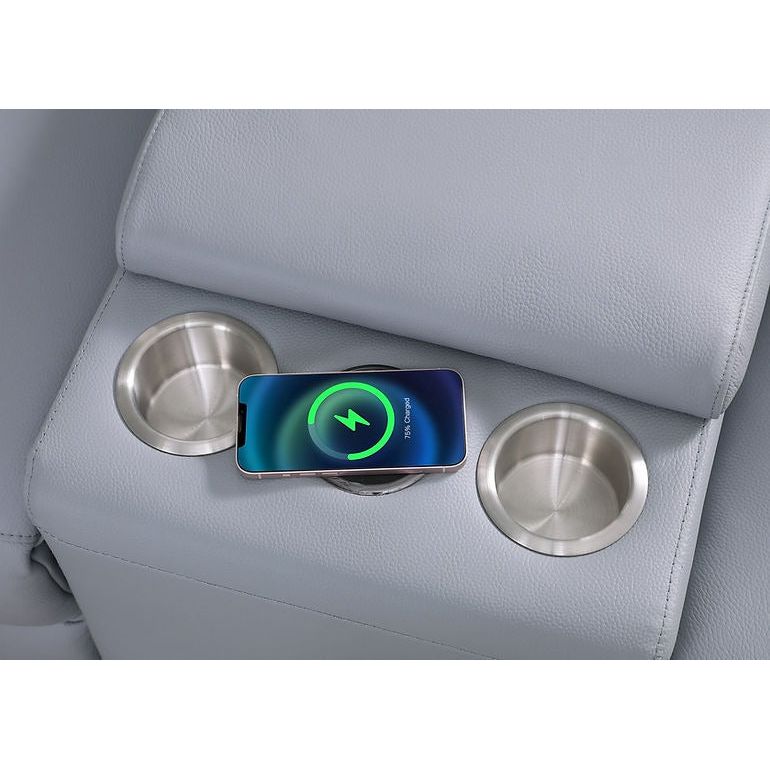 Picasso Light Blue 2-POWER Leather Match 6pc Sectional MI631