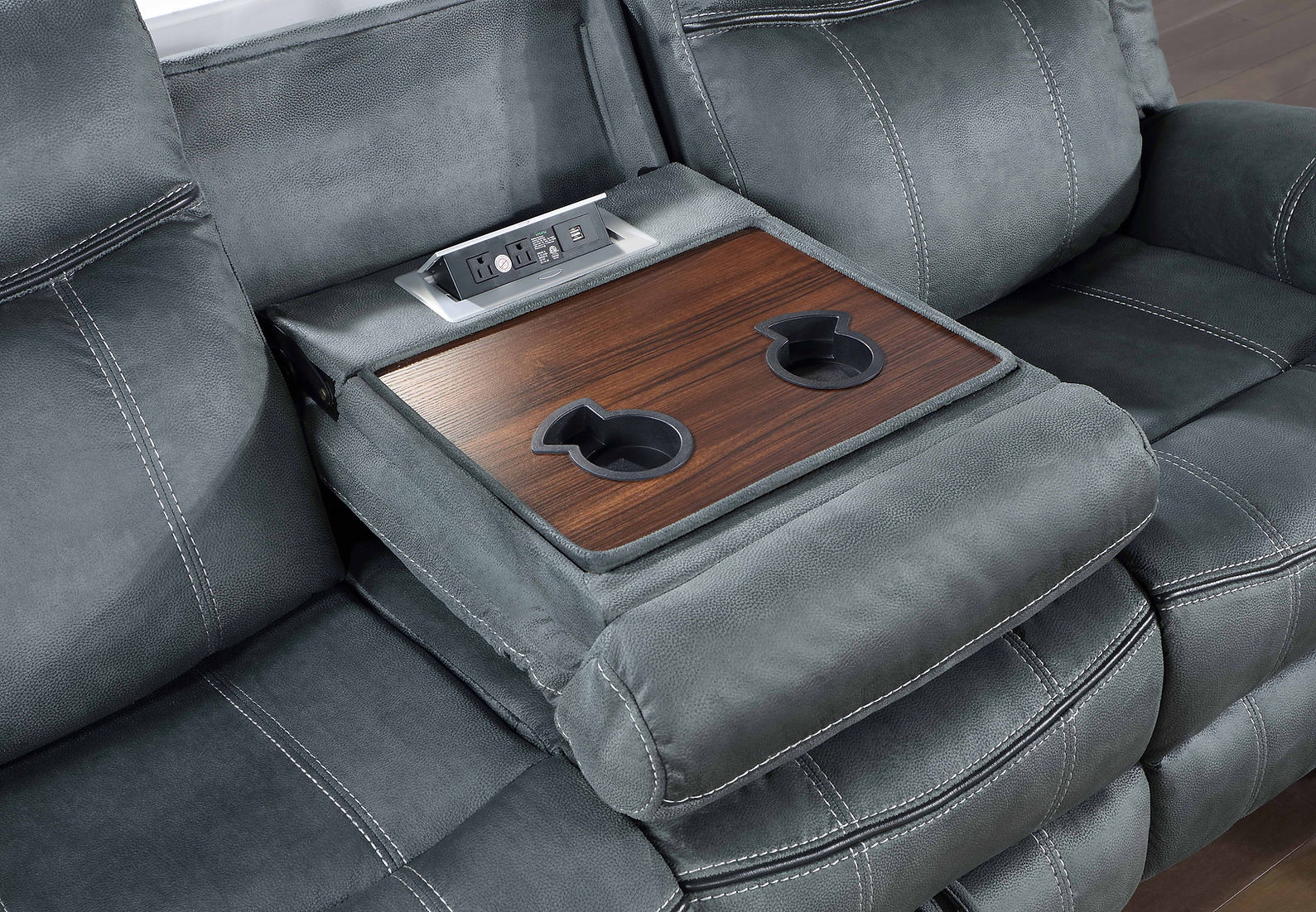Reclining Sofa with Drop Down Table, Storage Drawer, USB Port, & Power Outlet
