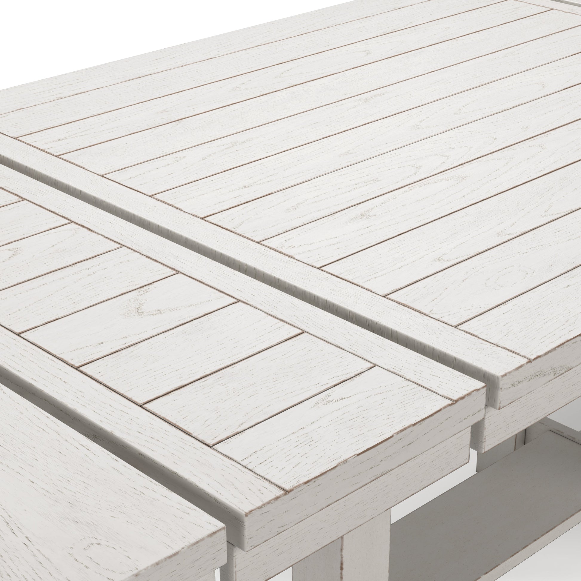 - Antiqued white finish with wood grain texture