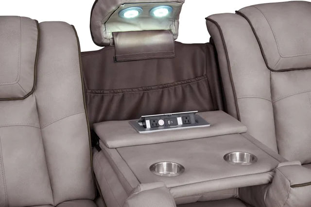 - Sofa Drop-down table with LED reading lights, dual cup holders, 2 electrical outlets and USB charging