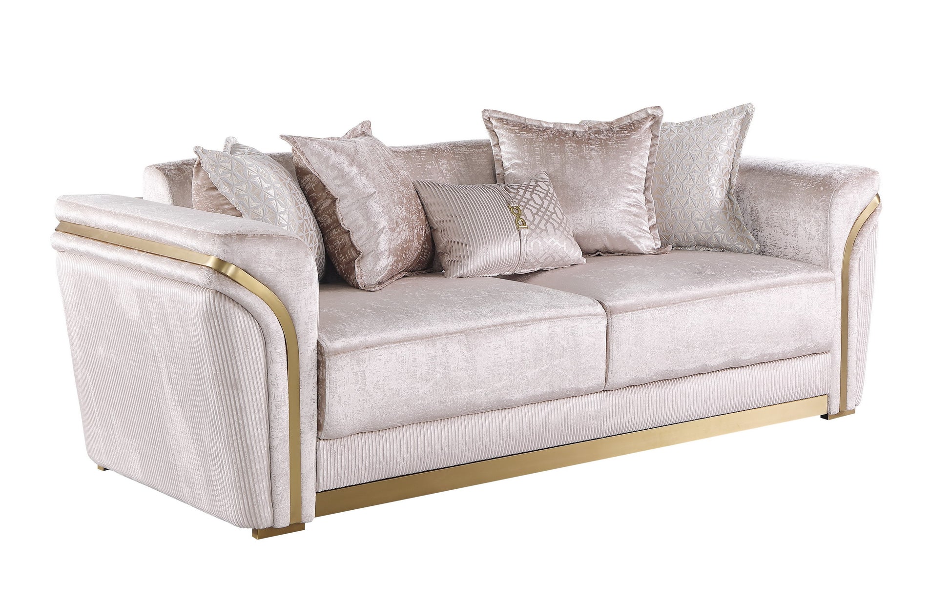 Signature Gold Framework: Elegant gold-tone accents frame the sweeping curves of the armrests and provide a continuous, lustrous base.