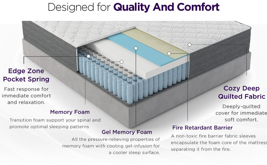 Victoria 10" Full Cooling Gel And Pocket Coil Hybrid Mattress (Medium-Firm)